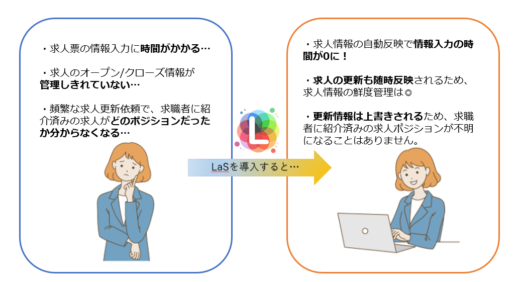 リクサス株式会社では、人材紹介会社向けの業務デジタル化ツール『LaS』を提供しています。