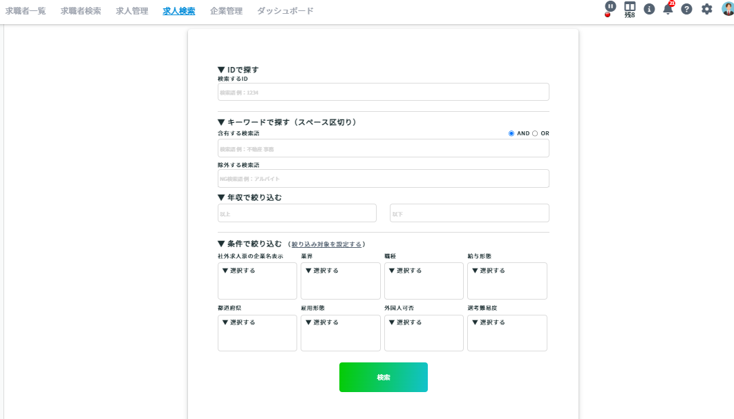 求職者にマッチする求人の情報を検索できます。 検索条件については事業に合わせたカスタマイズができるようになっております。 求職者の希望条件に合わせた求人票を自動で検索する、求人レコメンド機能もご用意しています。