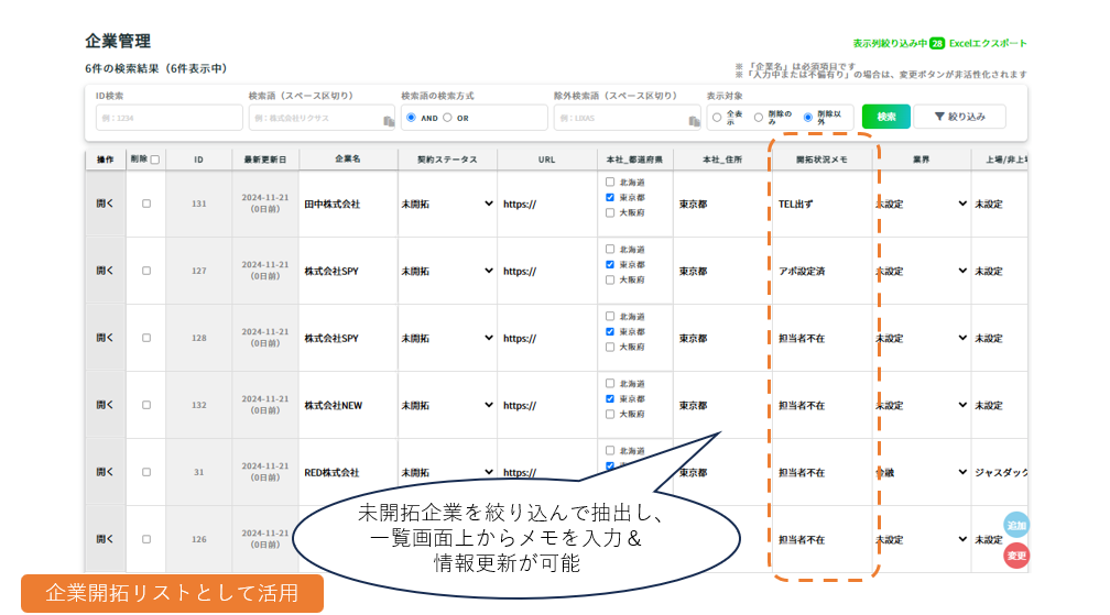 ① 営業リストの作成