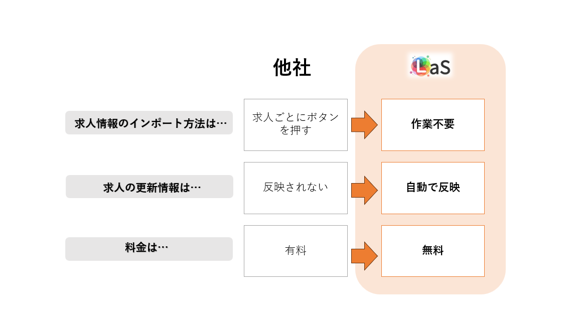 ・各種ATSの求人をまとめて・簡単にLaSにインポートできる。
