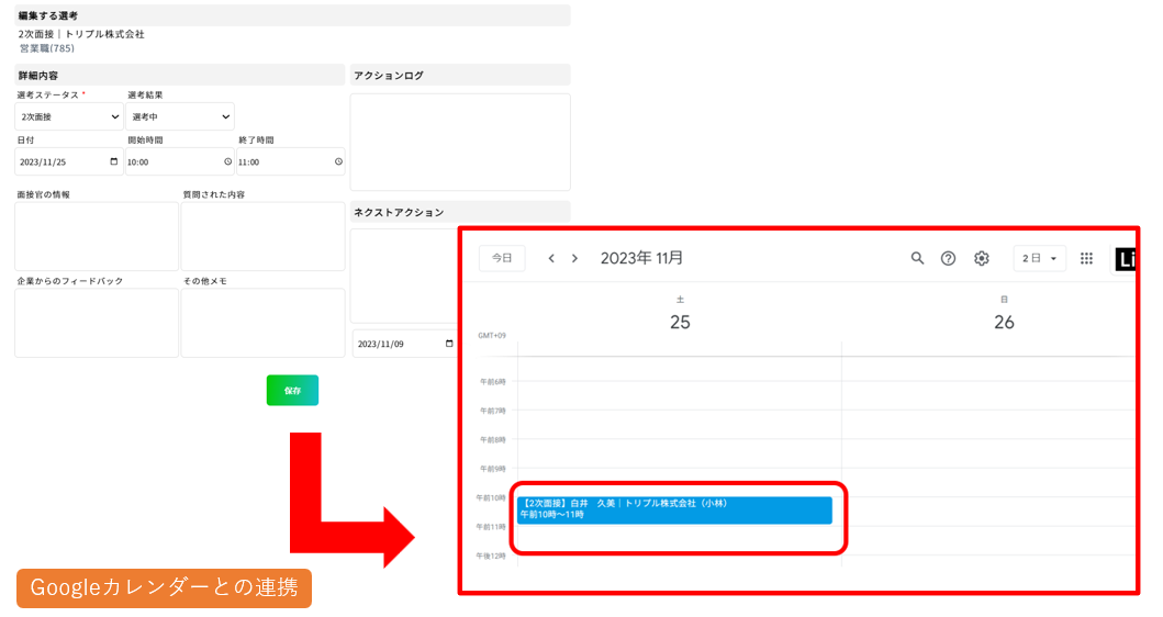 など、使用中のツールと合わせて管理をしていくことができます。 また、上記連携を行うことによって、社内全体で各求職者・案件の進捗状況が把握できるようになり、 管理者側からの状況把握も容易になります。
